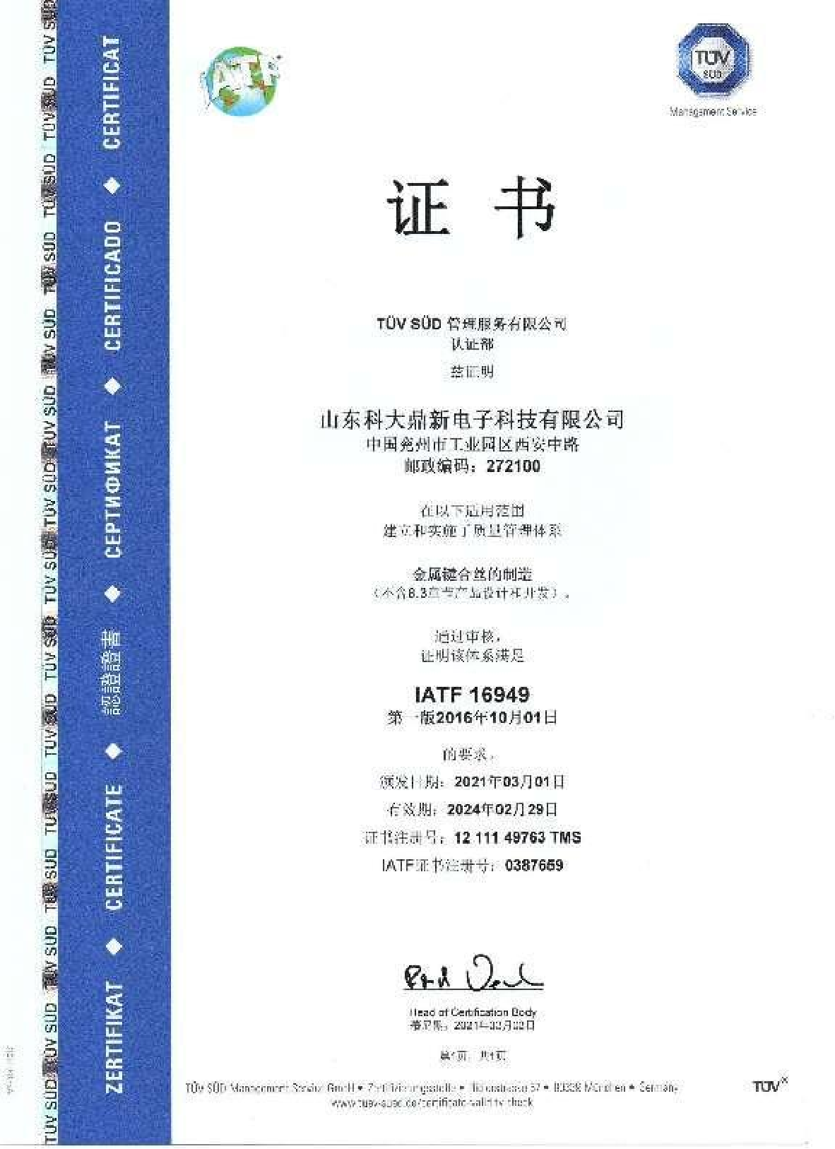 The company has successfully obtained various domestic and international quality system certifications—including ISO9001, ISO14001, and IATF16949—and has passed all relevant product testing standards.